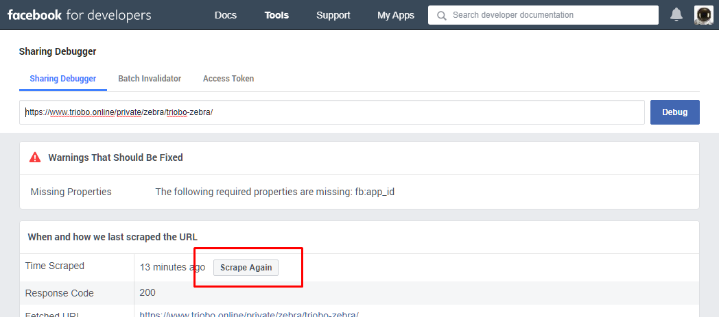 Jakmile změny uložíte, je dobré vynutit aktualizaci i na straně Facebooku. K tomu slouží odkaz Jít na Facebook Debug tool.