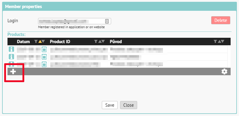 Pokud je čtenář již v databázi, rozkliknete detail pomocí ikony [i] na začátku řádku. V dalším dialogu (viz obrázek níže) pomocí tlačítka “+” přidáte Product ID odpovídající zakoupenému produktu.