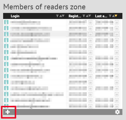Jestliže čtenář v databázi není, musíte jej nejprve v přehledu členů Čtenářské zóny založit pomocí tlačítka “+”: