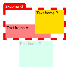 Na následujícím obrázku jsou seskupeny rámce A a B, zatímco C do skupiny nepatří. Jakmile skupinu otevřete poklepáním, rámec C pohasne a pracovat můžete volně s rámci A a B: