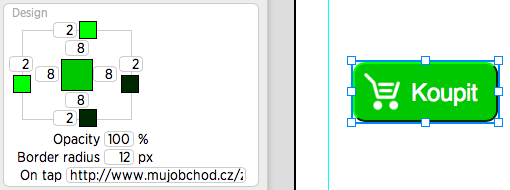 - Finish text box editing (by clicking off the page), but select it as On tap item again, enter the address to your internet shop: e.g. http://www.mystore.cz/goods.php?ID=123456